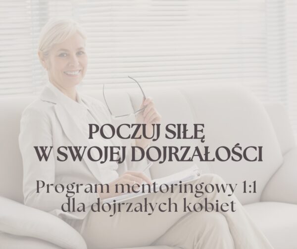 Program mentoringowy POCZUJ SIŁĘ W SWOJEJ DOJRZAŁOŚCI to indywidualne spotkania – online lub stacjonarne, które pomogą Ci przejść przez proces samoakceptacji i dostrzec w sobie pełnię dojrzałej kobiecej siły.